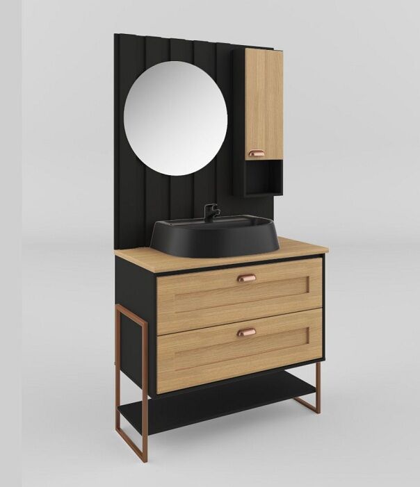O kit Pequim 80 super moderno é composto por balcão, cuba e espelheira. O esse conjunto possui detalhes que merecem todo destaque, como o acabamento ripado, espelho redondo, balcao possui 2 gavetões, com corrediça telescópica e o material é super moderno resistente a agua, que além de trazer beleza possibilita uma longa vida útil ao gabinete. Os puxadores modernos trazem delicadeza ao conjunto. Devido ao seu formato moderno e tamanho a espelheira proporciona luminosidade e profundidade ao ambiente.